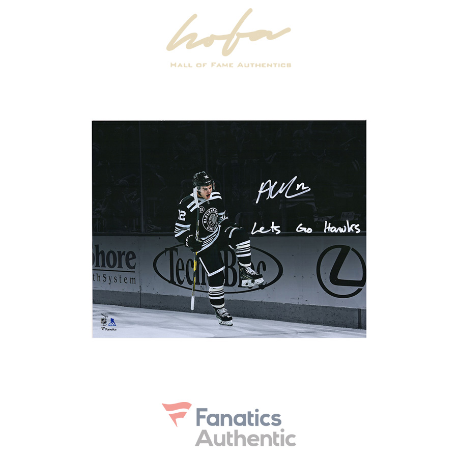 This 16″ x 20″ photograph has been personally hand-signed by Alex DeBrincat with the inscription “LETS GO HAWKS!” It is officially licensed by the National Hockey League and comes with an individually numbered, tamper-evident hologram from Fanatics Authentic. To ensure authenticity, the hologram can be reviewed online. This process helps to ensure that the product purchased is authentic and eliminates any possibility of duplication or fraud. this is a limited edition of 50.