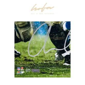 This photo includes a Panini Authentic certificate of authenticity with a unique hologram number that corresponds to the hologram on the actual collectible. These holograms protect the integrity of the product and serve to guarantee the authenticity of the signature it bears