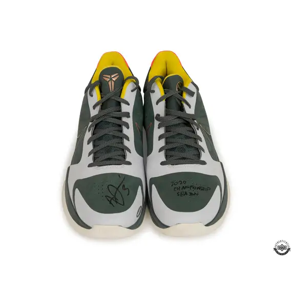 Upper Deck Authenticated is offering this game-worn signed and inscribed shoes of the All-Star power forward. Davis wore the shoes during the 2020 championship season and they were procured directly from the athlete. Davis has signed the right shoe of this Nike Kobe 5 Protro pair in black paint pen. He has also inscribed “2020 Championship Season” in black on the left shoe. His signature and inscription are deemed authentic by virtue of Upper Deck Authenticated’s Five-Step Process.