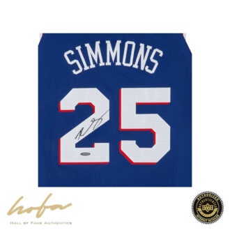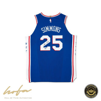 Prior to the 2017-18 season, Nike took over producing uniforms for the NBA. The look was an instant success. The lines were clean and the fonts bold. The uniforms for the classic older teams like the Philadelphia 76ers stood out the most. This jersey combines a classic clean look with a modern format. Add the signature of one of the most dynamic young players in the league and you get a highly coveted memorabilia item that is sure to be coveted by every NBA collector. Ben Simmons has added his signature to this blue Sixers jersey. Simmons has autographed this Philadelphia 76ers blue authentic Nike Jersey in black paint pen. His signature is deemed authentic by virtue of Upper Deck Authenticated’s Five-Step Process.