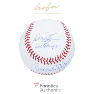 This baseball has been personally hand-signed by Brooks Robinson and Davey Johnson with the inscriptions “HOF 83/66 CHAMPS.” It has been obtained under the auspices of the MLB Authentication Program and can be verified by its numbered hologram at MLB.com. It also comes with an individually numbered, tamper-evident hologram from Fanatics Authentic. To ensure authenticity, the hologram can be reviewed online. This process helps to ensure that the product purchased is authentic and eliminates any possibility of duplication or fraud.