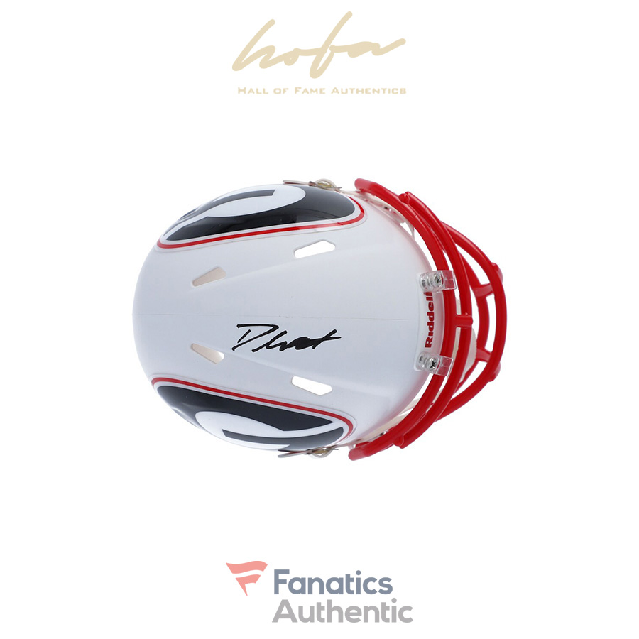 This mini helmet has been personally hand-signed by D’Andre Swift. It is officially licensed by the NCAA and comes with an individually numbered, tamper-evident hologram from Fanatics Authentic. To ensure authenticity, the hologram can be reviewed online. This process helps to ensure that the product purchased is authentic and eliminates any possibility of duplication or fraud.