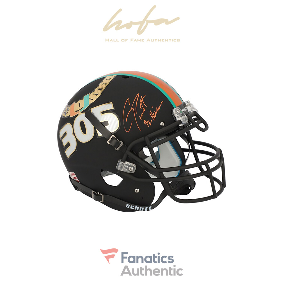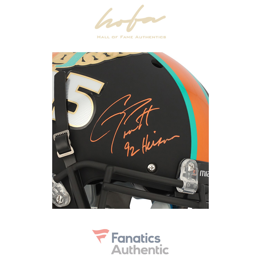 This helmet has been personally hand-signed by Gino Torretta with the inscription “92 HEISMAN.” It is officially licensed by the NCAA and comes with an individually numbered, tamper-evident hologram from Fanatics Authentic. To ensure authenticity, the hologram can be reviewed online. This process helps to ensure that the product purchased is authentic and eliminates any possibility of duplication or fraud.