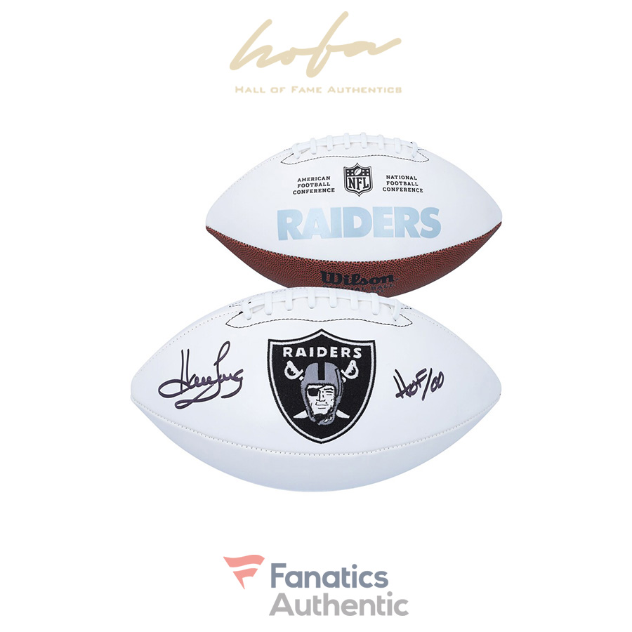 This football has been personally hand-signed by Howie Long with the inscription “HOF 00.” It is officially licensed by the National Football League and comes with an individually numbered, tamper-evident hologram from Fanatics Authentic. To ensure authenticity, the hologram can be reviewed online. This process helps to ensure that the product purchased is authentic and eliminates any possibility of duplication or fraud.