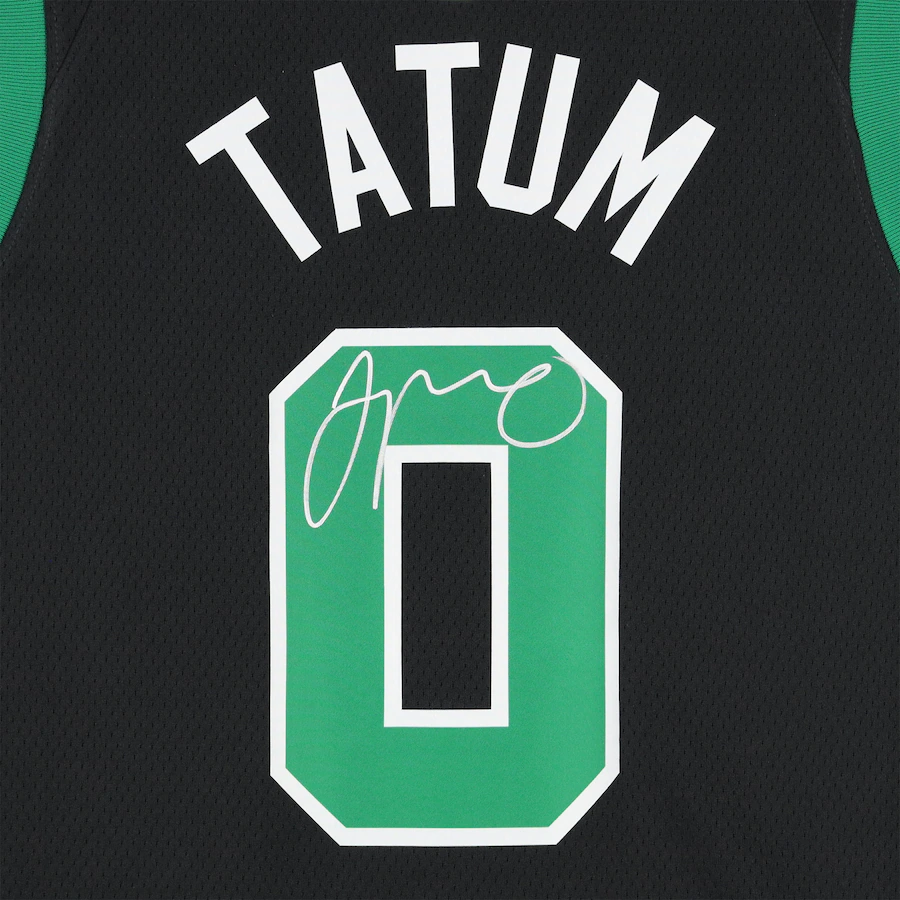 Level up your collection of Boston Celtics memorabilia with this Jayson Tatum autographed Black Jordan Brand 2022-23 Statement Edition Swingman Jersey. There’s no better way to show off your die-hard fandom. This eye-catching jersey features a hand-signed autograph by Jayson Tatum to make it the crown jewel of your Boston Celtics memorabilia. Plus, it includes an individually numbered, tamper-evident hologram that can be verified online to certify its authenticity.