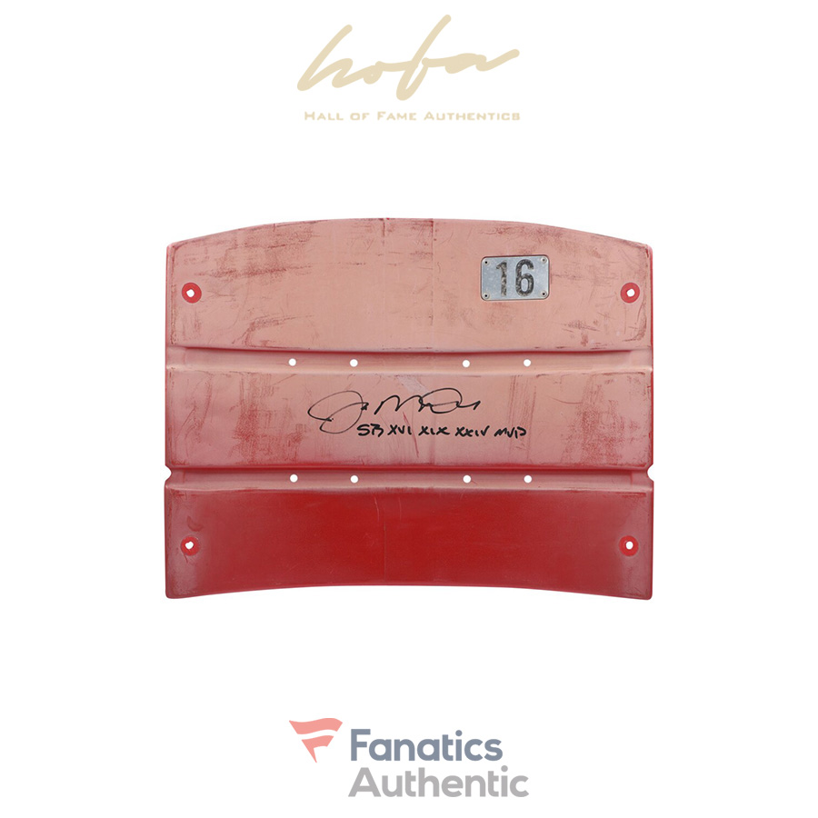 This seatback has been personally hand-signed by Joe Montana with the inscription “SB XVI, XIX, XXIV MVP.” It is officially licensed by the National Football League and comes with an individually numbered, tamper-evident hologram from Fanatics Authentic. To ensure authenticity, the hologram can be reviewed online. This process helps to ensure that the product purchased is authentic and eliminates any possibility of duplication or fraud.