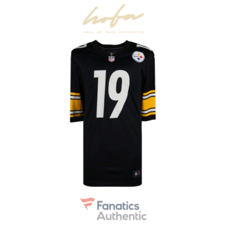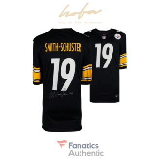 This jersey has been personally hand-signed by JuJu Smith-Schuster. It is officially licensed by the National helmet League and comes with an individually numbered, tamper-evident hologram from Fanatics Authentic. To ensure authenticity, the hologram can be reviewed online. This process helps to ensure that the product purchased is authentic and eliminates any possibility of duplication or fraud.