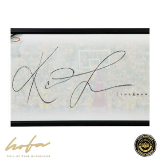Guys who stand 6-foot-10 and rebound as well as Kevin Love aren’t supposed to be accurate from long distance. But that’s one of many traits that help Love stand above other power forwards. His 158 3-pointers in 2015-16 were the second-most of his career, and that effort was a big reason why the Cavaliers ended the season as the NBA Finals champions. Upper Deck Authenticated has honored Love’s unique long-distance shooting accuracy for a stretch 4 with our latest “The Show” piece, this one titled “K-Love.” The Show features the largest Kevin Love signature Upper Deck has ever produced along with a uniquely designed image printed on acrylic. Measuring approximately three feet in length, his signature is the centerpiece of this UDA-designed piece of sports art. It comes framed and measures 46″ x 20″ overall for a museum-quality piece that will be the highlight of any wall. Love’s huge autograph is signed using a thick black marker. His signature is deemed authentic by virtue of Upper Deck Authenticated’s Five Step Process.