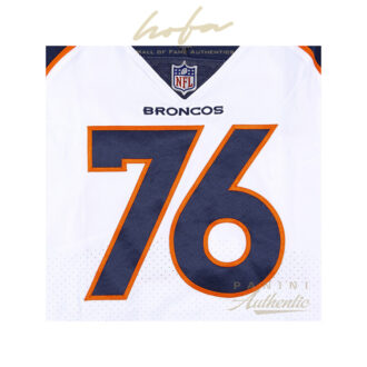 This Denver Broncos game worn jersey includes a Panini Authentic certificate of authenticity with a unique hologram number that corresponds to the hologram on the actual collectible. These holograms protect the integrity of the product and serve to guarantee the authenticity of the signature it bears.