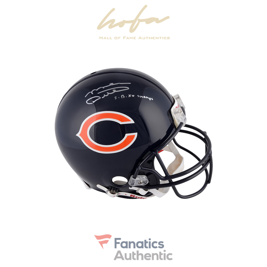 This helmet has been personally hand-signed by Mike Ditka with the inscription “SB XX Champs.” It is officially licensed by the National Football League and comes with an individually numbered, tamper-evident hologram from Fanatics Authentic. To ensure authenticity, the hologram can be reviewed online. This process helps to ensure that the product purchased is authentic and eliminates any possibility of duplication or fraud.