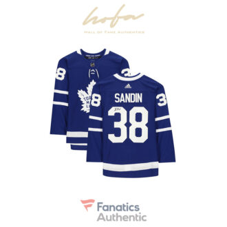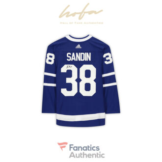 This jersey has been personally hand-signed by Rasmus Sandin. It is officially licensed by the National Hockey League and comes with an individually numbered, tamper-evident hologram from Fanatics Authentic. To ensure authenticity, the hologram can be reviewed online. This process helps to ensure that the product purchased is authentic and eliminates any possibility of duplication or fraud.