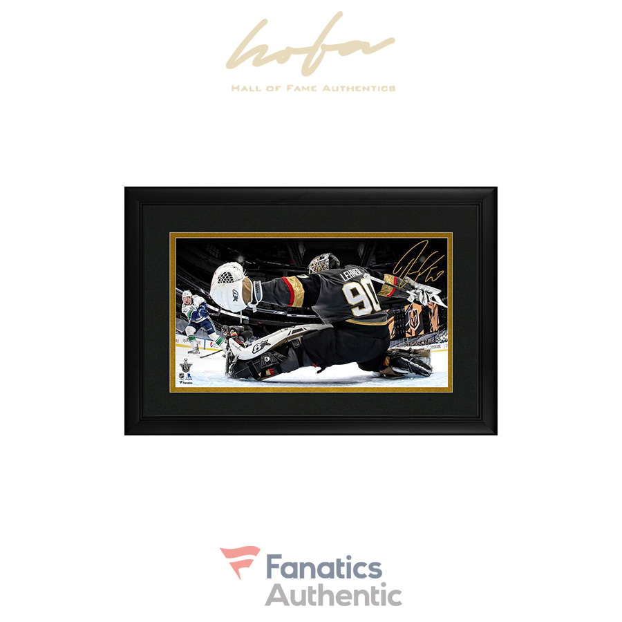 This 10” x 18” photograph has been personally hand-signed by Robin Lehner. It is officially licensed by the NHL and comes with an individually numbered, tamper-evident hologram from Fanatics Authentic. To ensure authenticity, the hologram can be reviewed online. This process helps to ensure that the product purchased is authentic and eliminates any possibility of duplication or fraud. The finished piece measures 13.5″ x 21.5″ x 1″ and is ready to hang in any home or office.