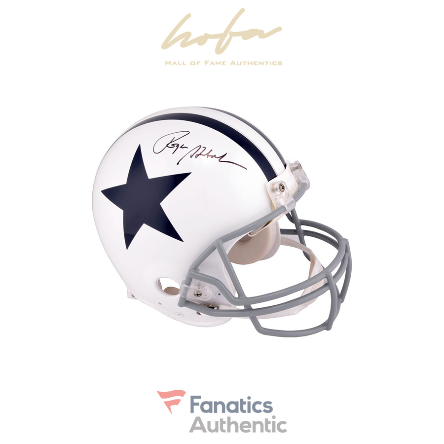 This Proline helmet has been personally hand-signed by Roger Staubach. It is officially licensed by the National Football League and comes with an individually numbered, tamper-evident hologram from Fanatics Authentic. To ensure authenticity, the hologram can be reviewed online. This process helps to ensure that the product purchased is authentic and eliminates any possibility of duplication or fraud.