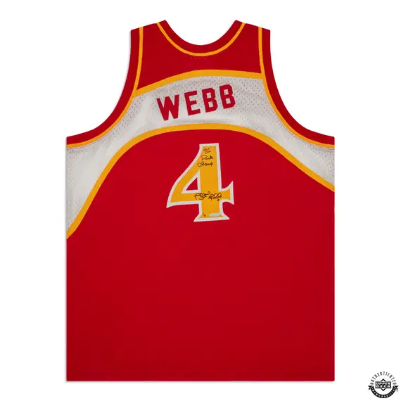 This jersey is autographed and inscribed by Spud Webb with a black paint pen. Webb’s signature and inscription were witnessed by an Upper Deck representative as part of UDA’s 5-step authentication process.