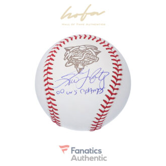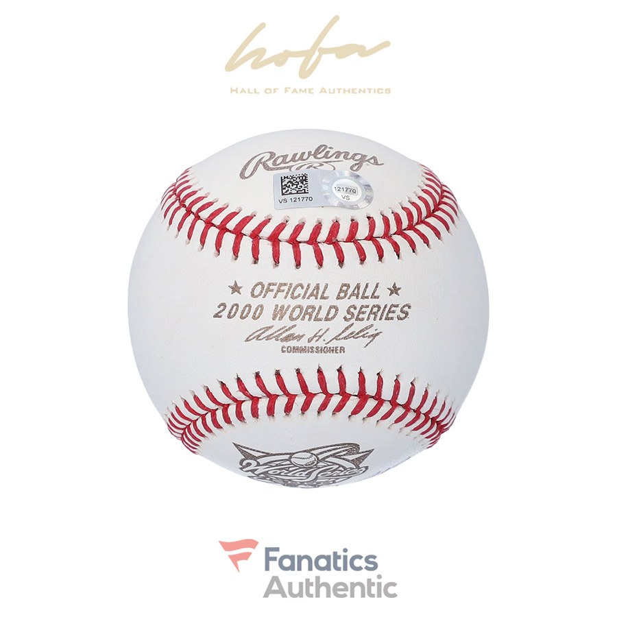 This baseball has been personally hand-signed by Tino Martinez with the inscription “00 WS CHAMPS.” It has been obtained under the auspices of the Major League Baseball Authentication Program and can be verified by its numbered hologram at MLB.com. It also comes with an individual numbered, tamper-evident hologram from Fanatics Authentic. This process helps to ensure that the product purchased is authentic and eliminates any possibility of duplication or fraud.