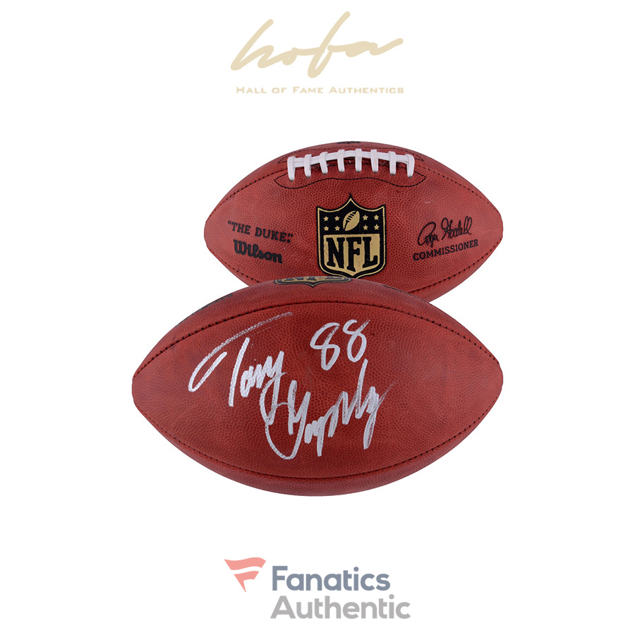 This football has been personally hand-signed by Tony Gonzalez. It is officially licensed by the National Football League and comes with an individually numbered, tamper-evident hologram from Fanatics Authentic. To ensure authenticity, the hologram can be reviewed online. This process helps to ensure that the product purchased is authentic and eliminates any possibility of duplication or fraud.