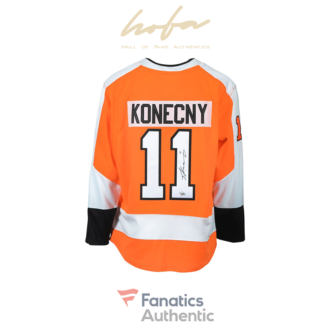 This jersey has been personally hand-signed by Travis Konecny. It is officially licensed by the National Hockey League and comes with an individually numbered, tamper-evident hologram from Fanatics Authentic. To ensure authenticity, the hologram can be reviewed online. This process helps to ensure that the product purchased is authentic and eliminates any possibility of duplication or fraud.