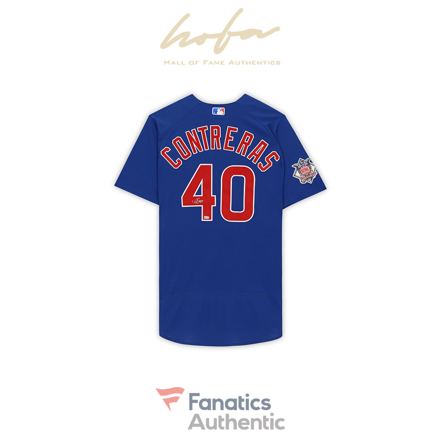 This jersey has been personally hand-signed by Willson Contreras. It has been obtained under the auspices of the Major League Baseball Authentication Program and can be verified by its numbered hologram at MLB.com. It also comes with an individual numbered, tamper-evident hologram from Fanatics Authentic. This process helps to ensure that the product purchased is authentic and eliminates any possibility of duplication or fraud.