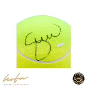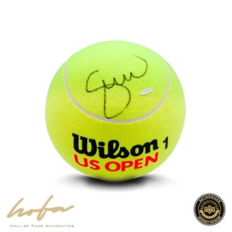 Serena Williams’ story is one of perseverance, dedication and an undying focus on making yourself the best possible person and athlete you can be. Her beginnings in tennis were of the humble variety, plying her craft on public courts in Compton, CA, at the age of 3. While many of her peers were learning from private coaches on country club courts, Serena and her sister Venus were being taught by their father Richard on suburban public courts. Serena became a champion and the No. 1 ranked player in the world not only because she possessed talent, but because she has never stopped working. At the 2017 Australian Open, she tied Margaret Court for the most career singles Major championships with 23. UDA is proud to partner with the world’s greatest female athlete to provide collectors with a unique set of new memorabilia. Williams has autographed this jumbo 9” Wilson tennis ball in black paint pen. Her signature is deemed authentic by virtue of Upper Deck Authenticated’s Five-Step Process.